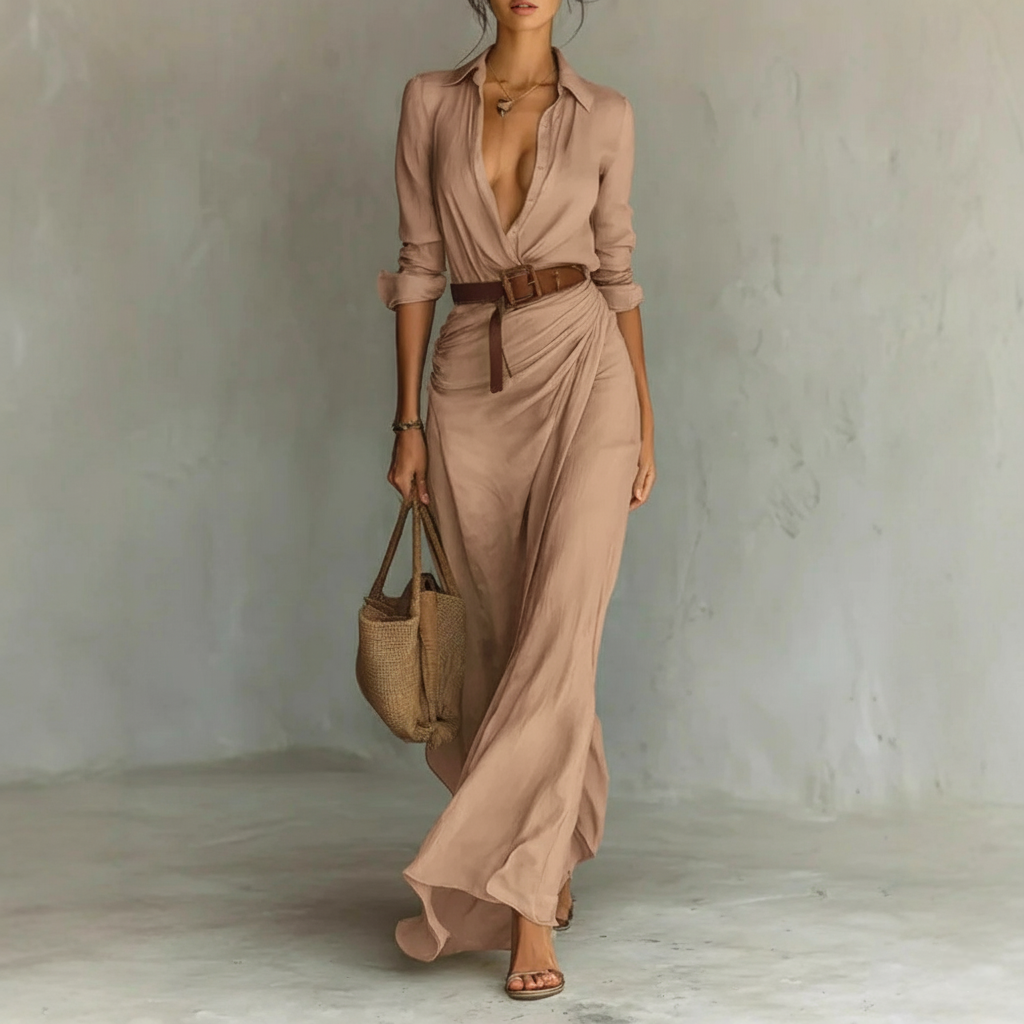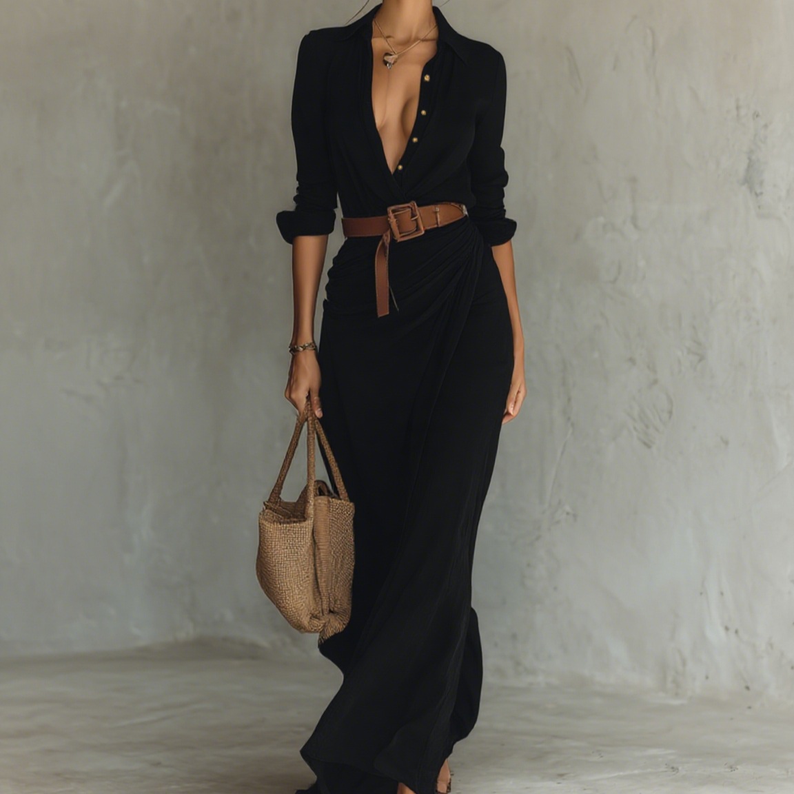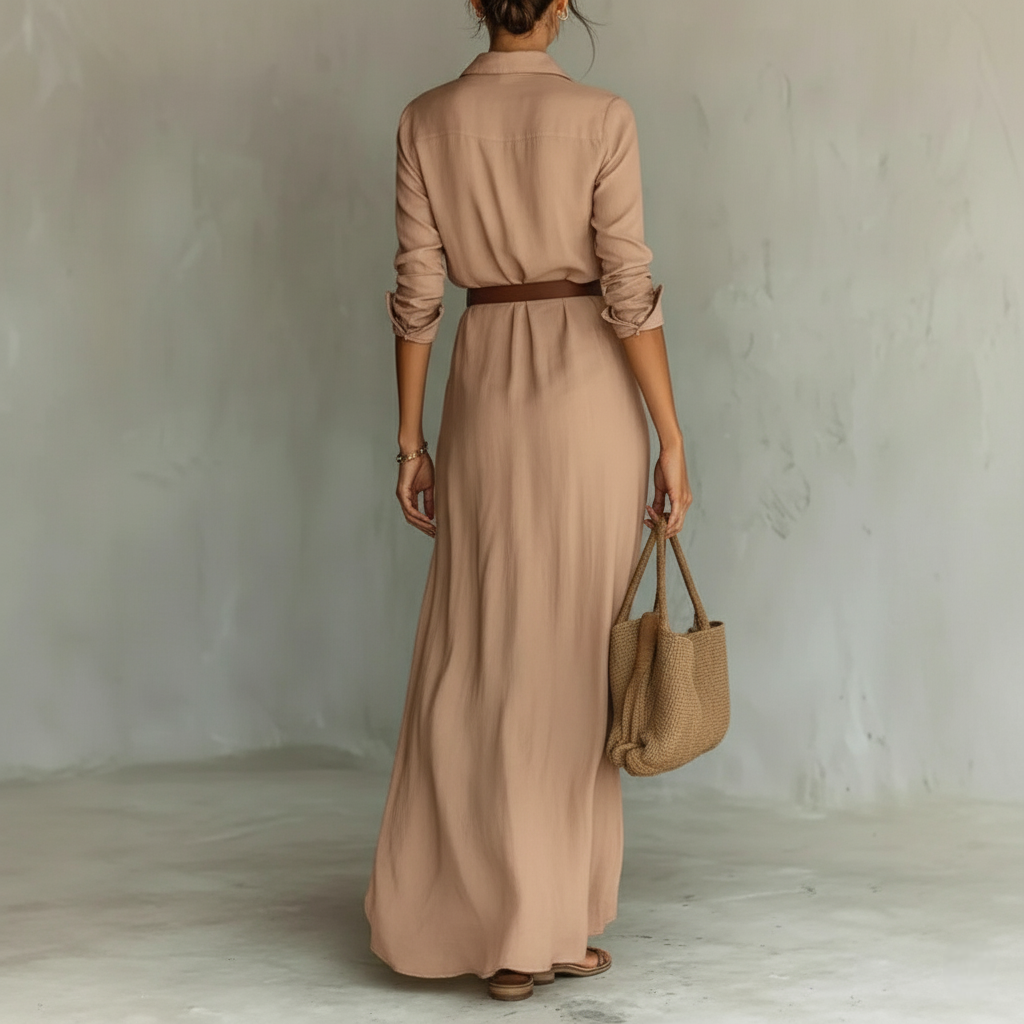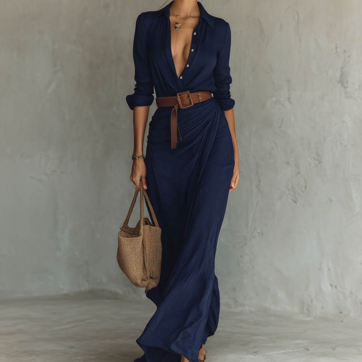 Banva™ | Button-Up Lapel Collar Pleated Maxi Dress
