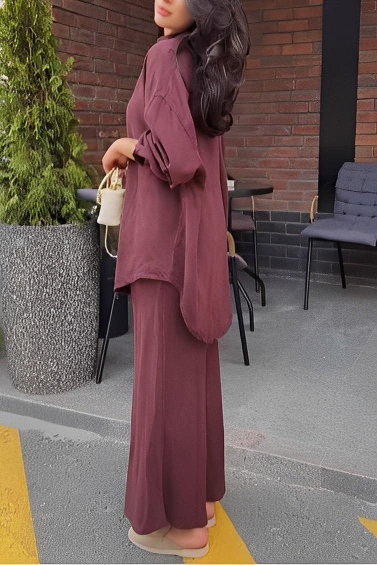 Omat™ | Loose V-Neck & Wide Leg Pants Set