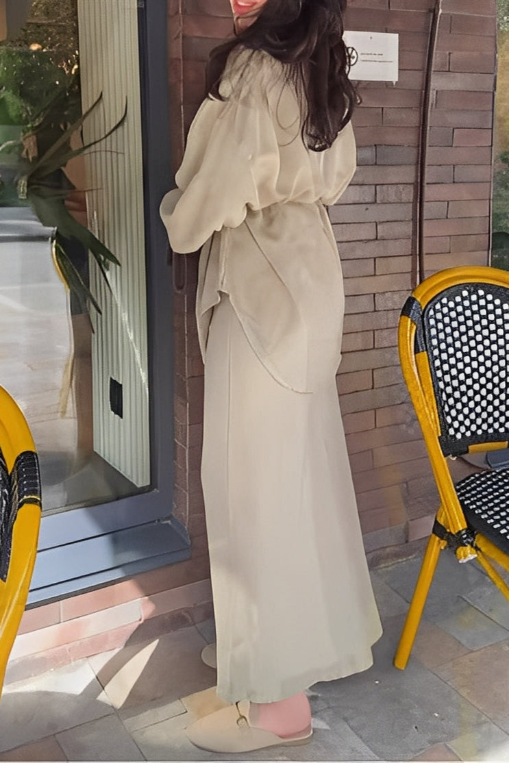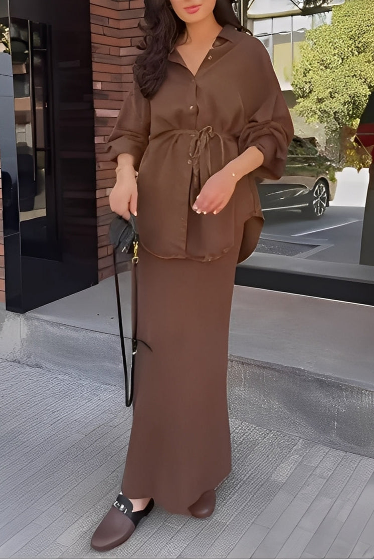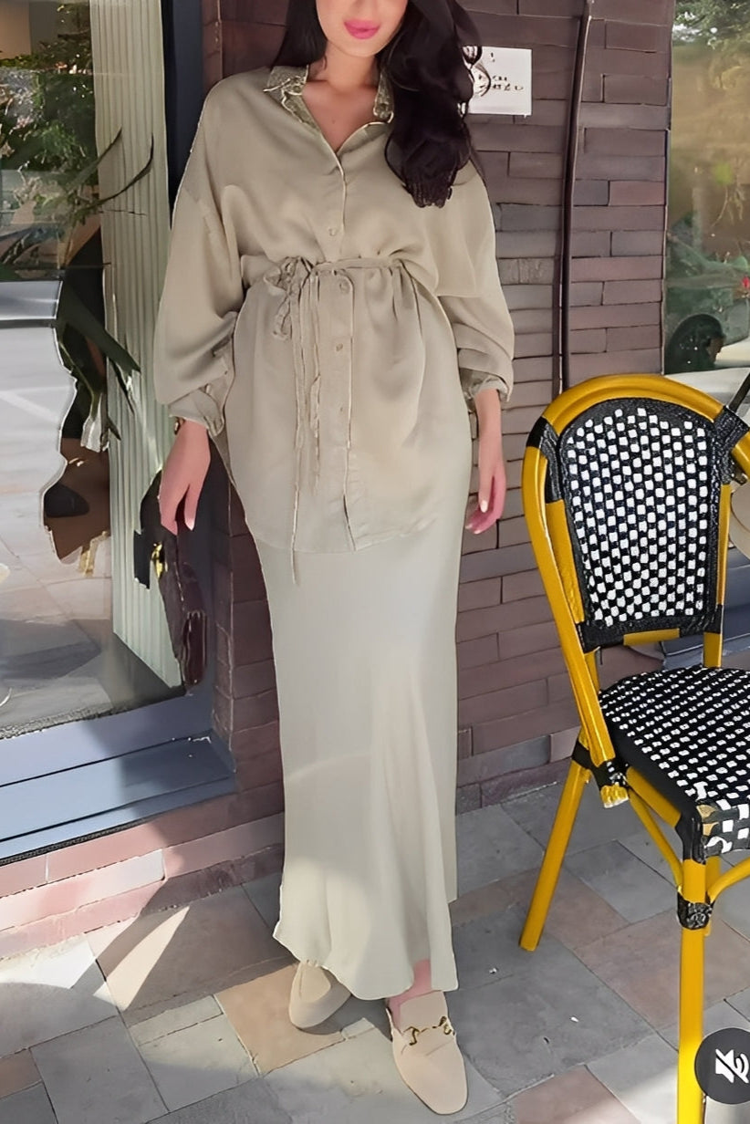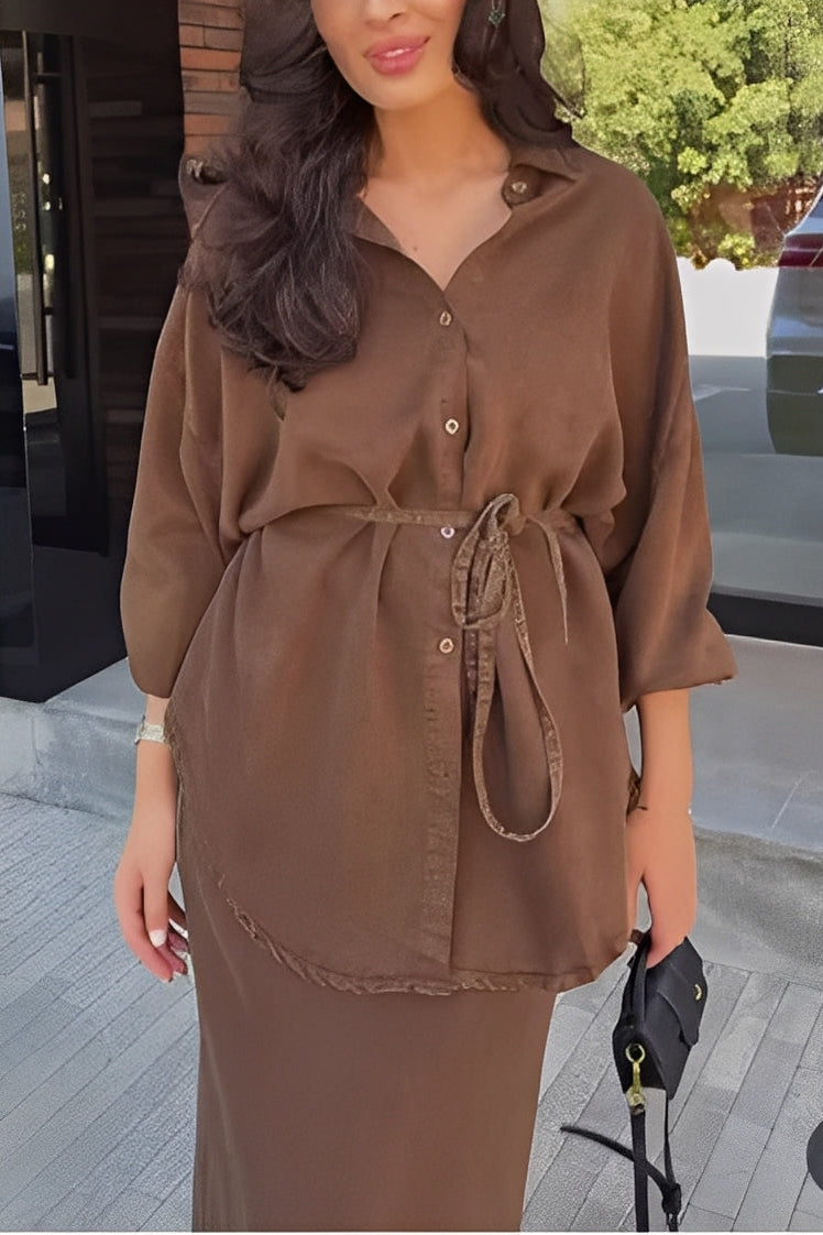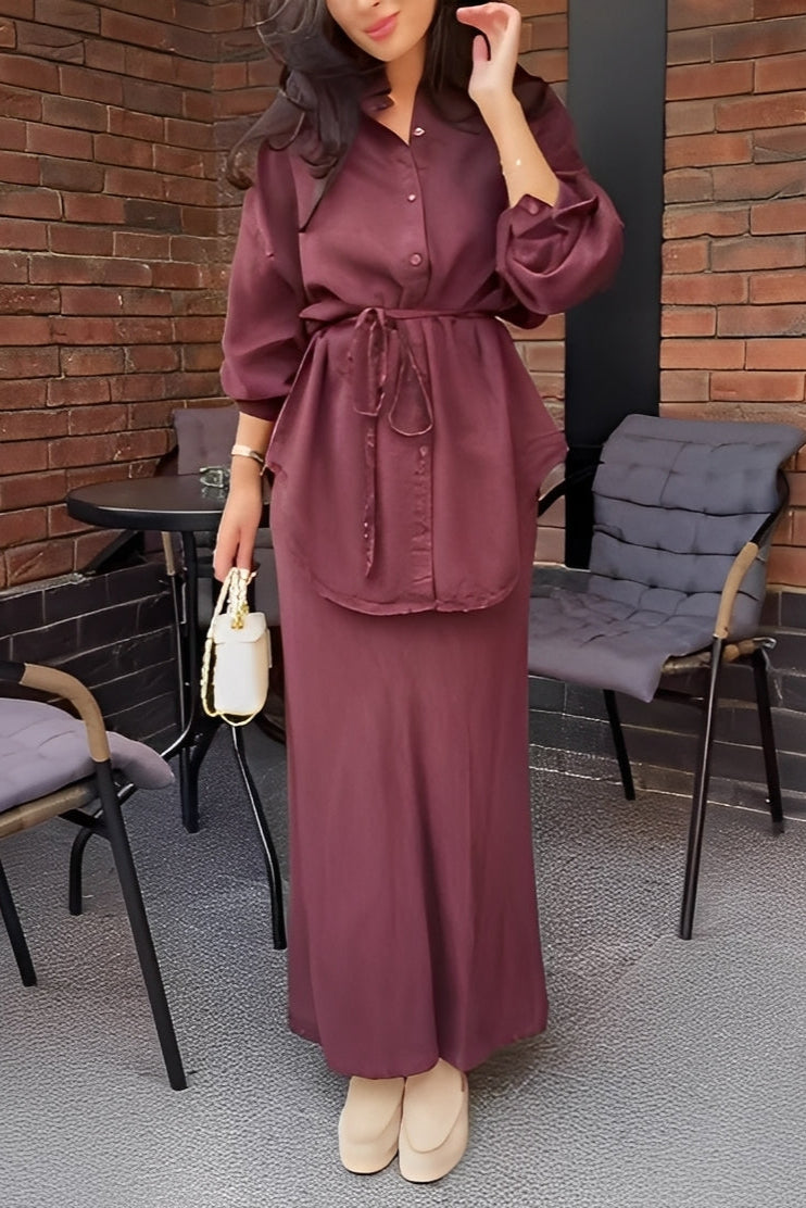 Lily™ | Tie Waist Long Sleeve Shirt & Skirt 2-Piece Outfit Set